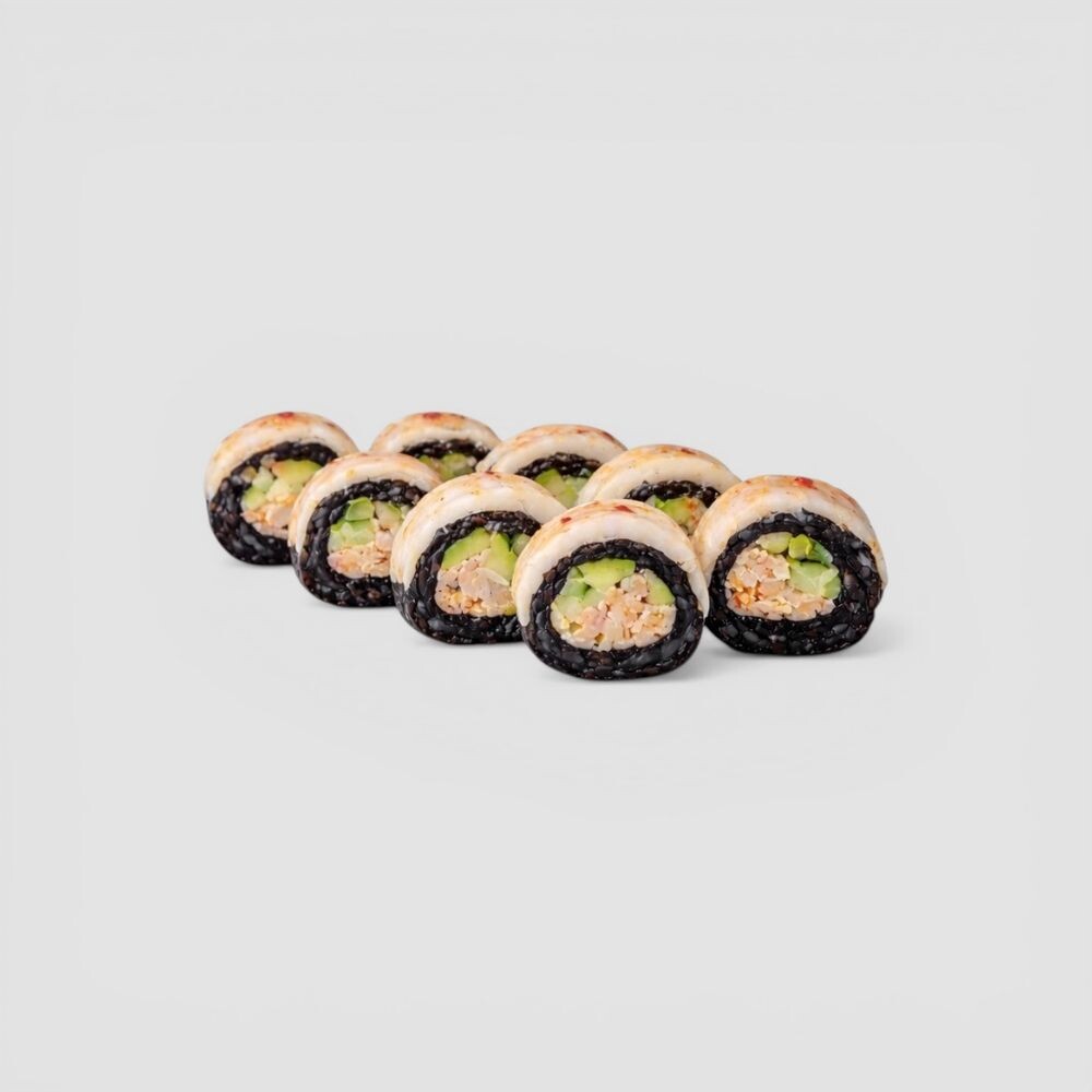 креветка, краб, огурец, авокадо, соус сладкий Чили, чернила каракатицы