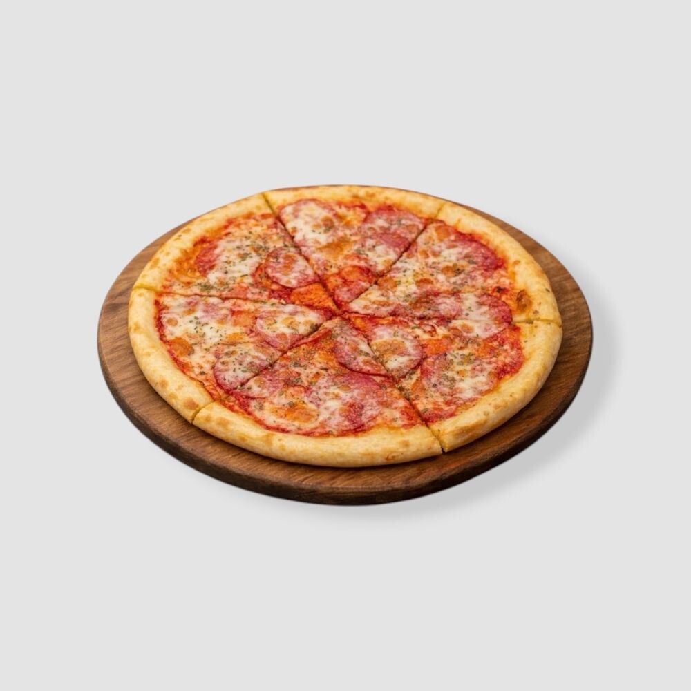 дрожжевое тесто для пиццы по-итальянски, сыр моцарелла, итальянский соус пульпа, салями, орегано