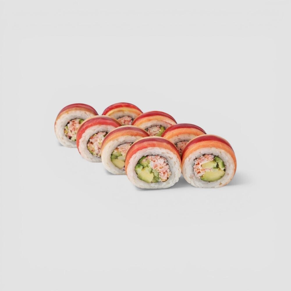 краб, угорь, лосось, тунец, авокадо, огурец, соус лайм